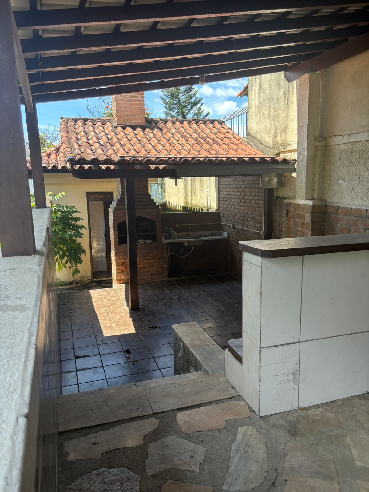 Vendo casa alto astral, arejada, sol batendo na piscina o dia todo até o finalzinho da tarde, sauna, churrasqueira, quartinho de ferramentas…